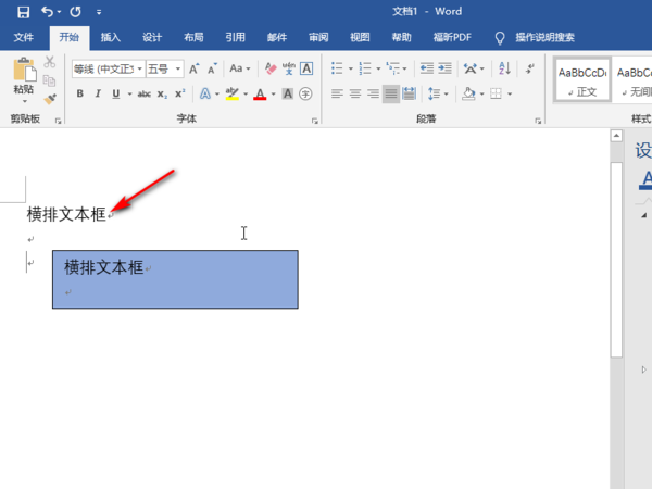 2、首先插入一个横排的文本框并输入文字,用来演示如何只去掉文本框而保留文字。