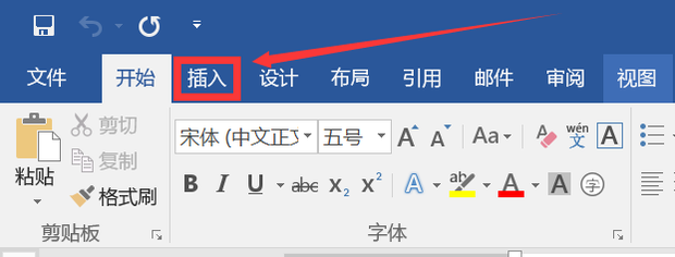 如图在Word文档中,点击箭头所示的“插入”,打开“插入”工具栏。