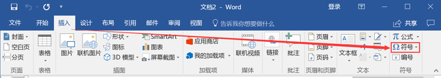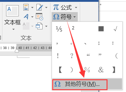 在“插入”工具栏中,点击“符号”按钮,打开部分符号界面。