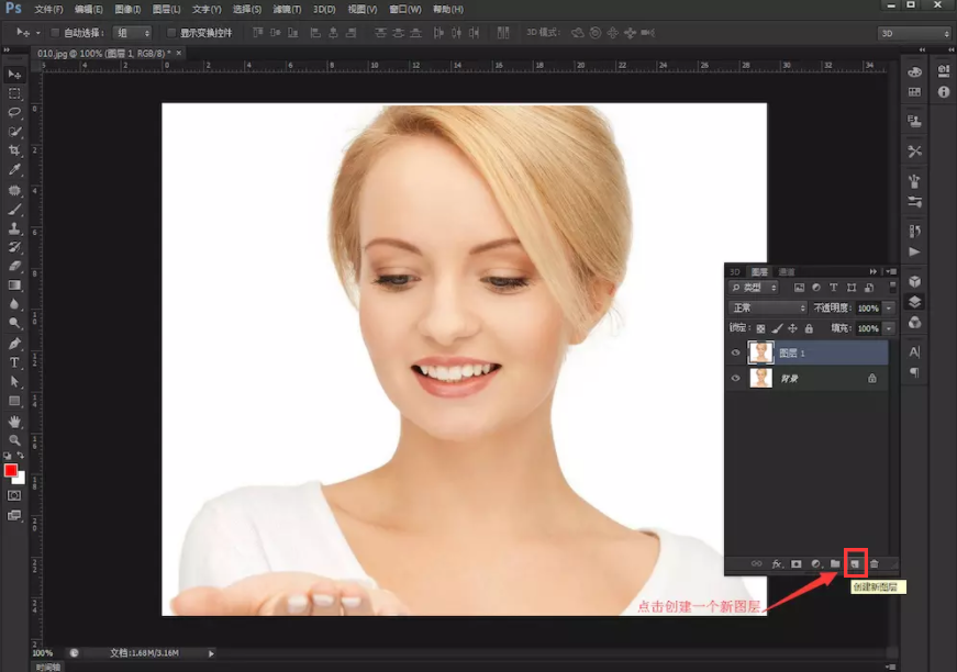 三、点击新建图层按钮新建一个图层,也可按(CTRT+SHIFT+J)。