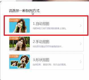 (2)三种抠图方法,需要根据你的照片而定。“自动抠图”:针对那些图片与背景颜色相差甚大的照片;“手动抠图”:可以自己控制大小、抠图的方向;“形状抠图”:针对某一具体的图像图形抠图。