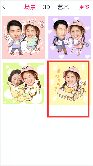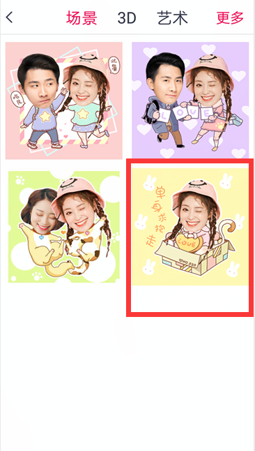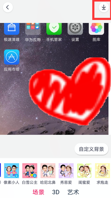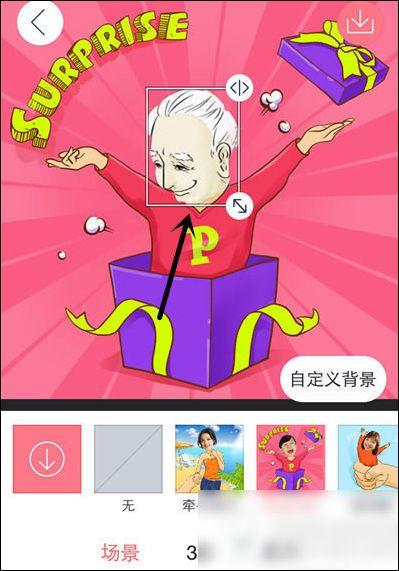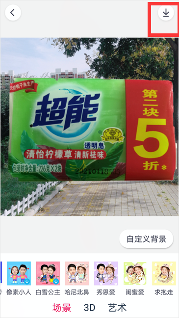 2、将画笔在照片需要抠图的位置填满,进行下一步,然后将选中的照片自定义背景场景,把头像左右移动到合适的位置如图所示,点击右上角保存按钮将图片保存。