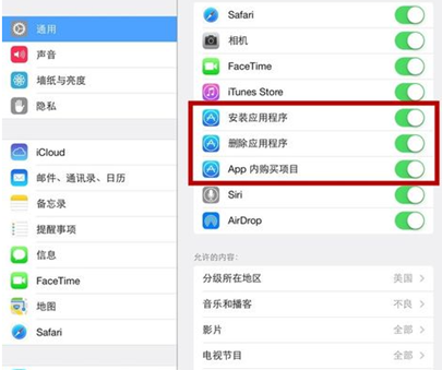 进入设置-限制-如果第一次进入需要设置密码,然后下面有很多自己可以限制的类别 电影 电视节目 各种软件等等 看自己的需要吧 和简单的 你拿IPAD试下就知道了