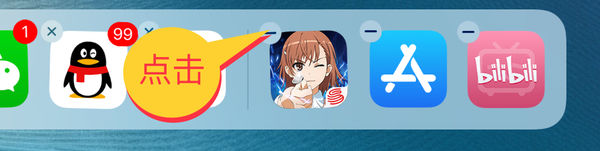 轻点Dock栏(程序坞)最右侧图标左上角的「减号」即可移除最近使用应用的图标。