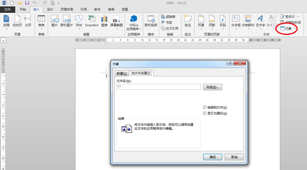 单击“插入”按钮第4步,返回“对象”对话框,单击“确定”按钮,如图所示。