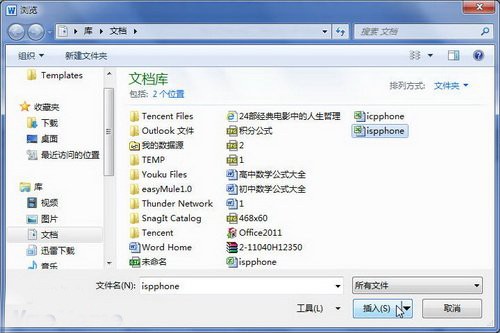 在插入文件窗口浏览到要插入的文件位置,单击“插入”按钮