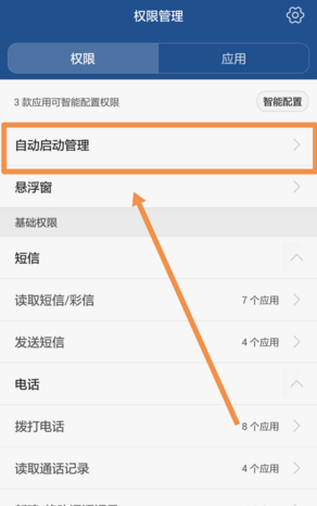 3、进入【权限管理】界面,找到【自动启动管理】并点击,如图。