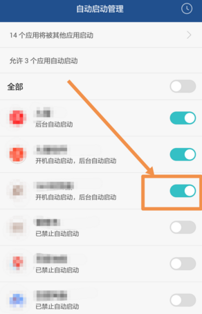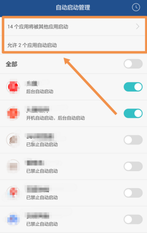 4、进入【自动启动管理】界面,可以查看到手机上所有应用是否自动启动。