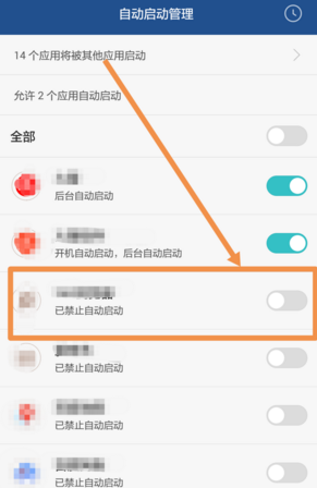 5、找到其中一个已禁止自动启动的应用,也就是你想要让后台一直运行不自动关闭的程序。