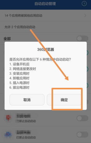 6、弹出提示框是否允许应用自动启动,点击【确定】按钮,成功开启该应用后台自动运行功能!如图所示。