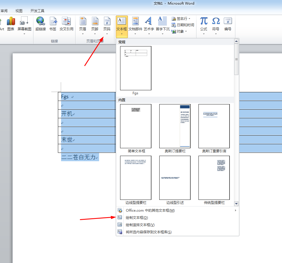 3、点开文本档后下面有个绘制文本框,不要直接点选上面的。