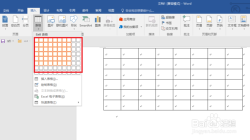 选择我们插入的表格的行列数,插入表格,如下图。