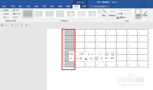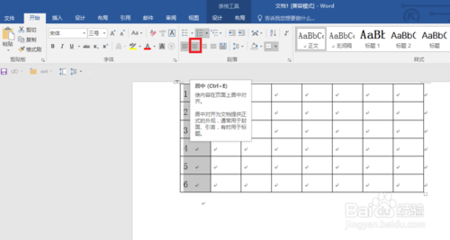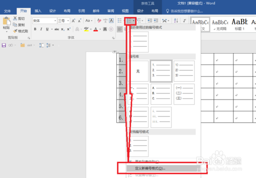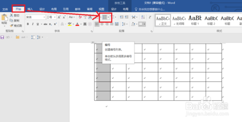 点击【表格工具】下面的编号按钮