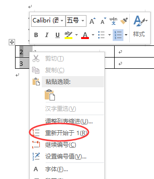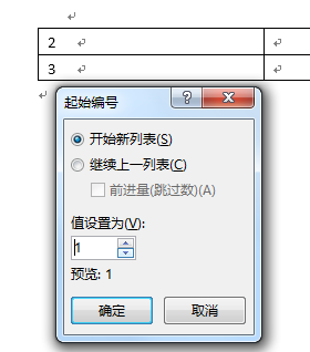 word2010新建表格,编号如何再从1开始