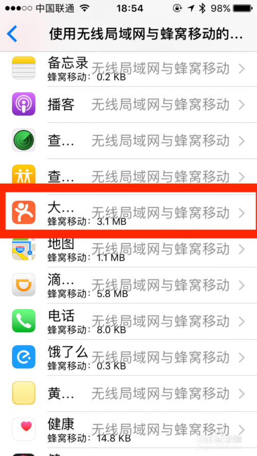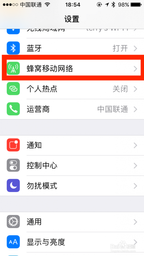 1.打开手机【设置】的【蜂窝移动网络】如图: