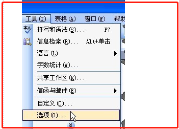 1、打开WORD,在”工具“菜单下选择”选项“命令;