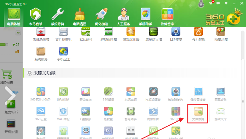 第一款,大部分人都在使用的软件,360安全卫士,这里面就有文件恢复功能,进入应用里面添加就行了。