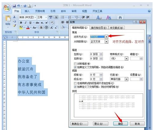2、word中英文左对齐:选择要设置的文本或段落,“开始”菜单——段落,打开“段落”对话框,选择“对齐方式”为左对齐。