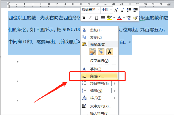 3、单击鼠标右键,选择“段落”进行点击,弹出“段落”对话框,如图所示: