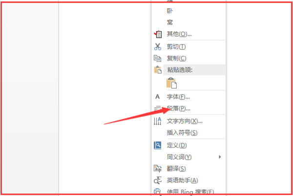 2、然后鼠标右击你选中的字体,然后在弹出来的操作页面中点击【段落】。
