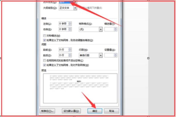 3、最后进入到段落的操作页面以后,接着在页面的对齐方式选择【居中】,然后在页面的左下角点击【确定】即可实现word文字竖排居中的目的了。