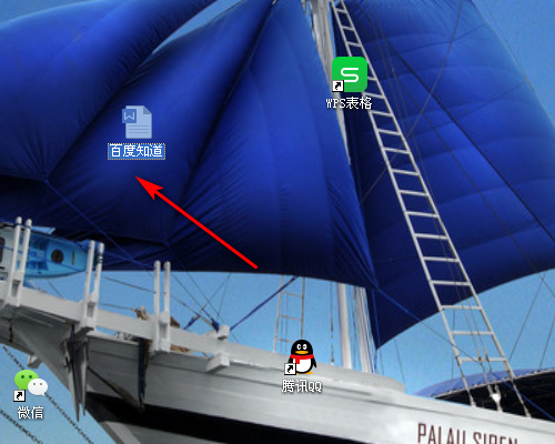 4.最后输入文档的名称,例如以百度知道来命名,输入名字后,鼠标随意点击一下桌面空白页就修改完成了。