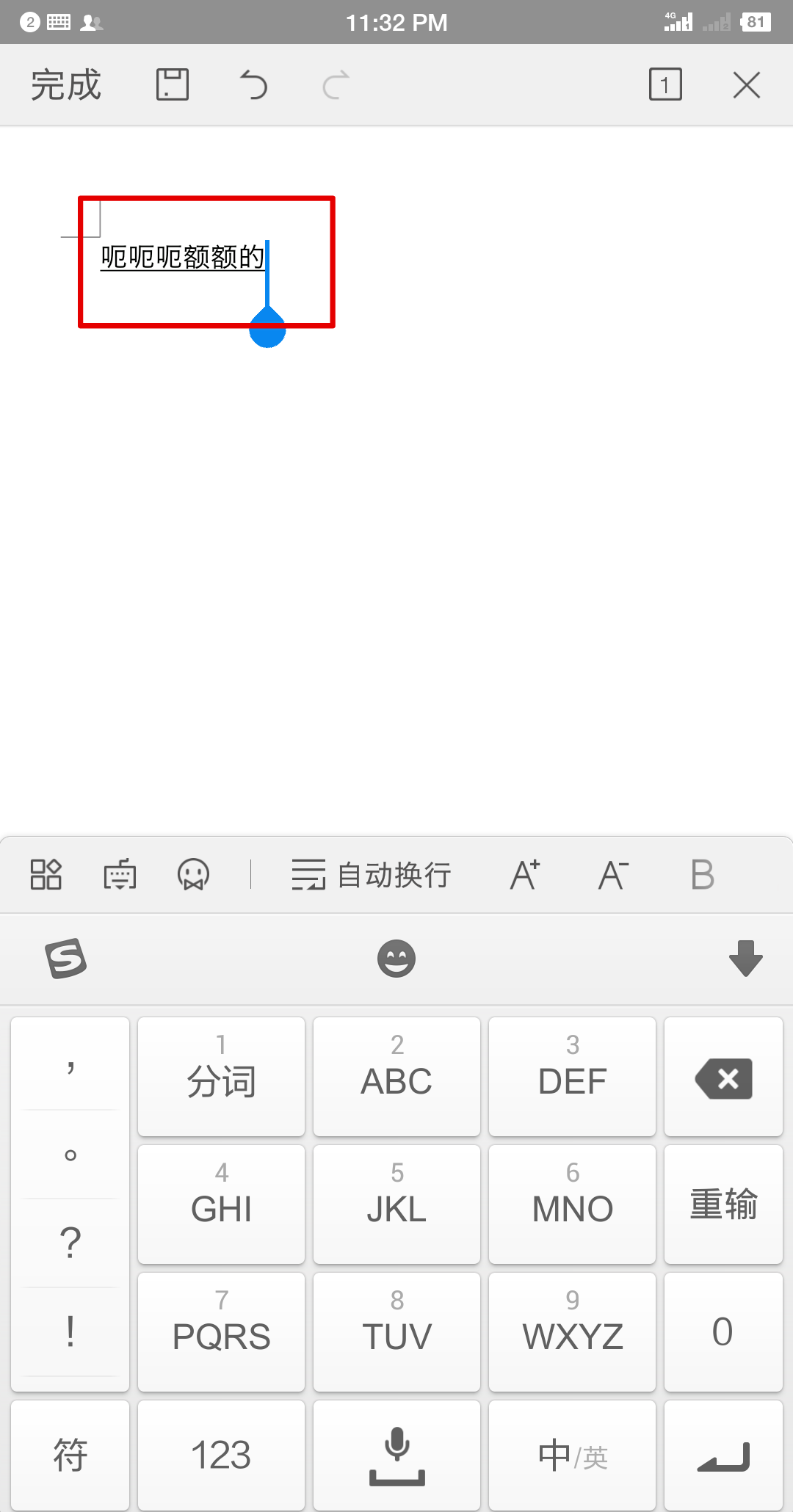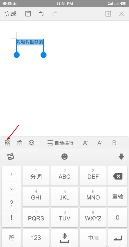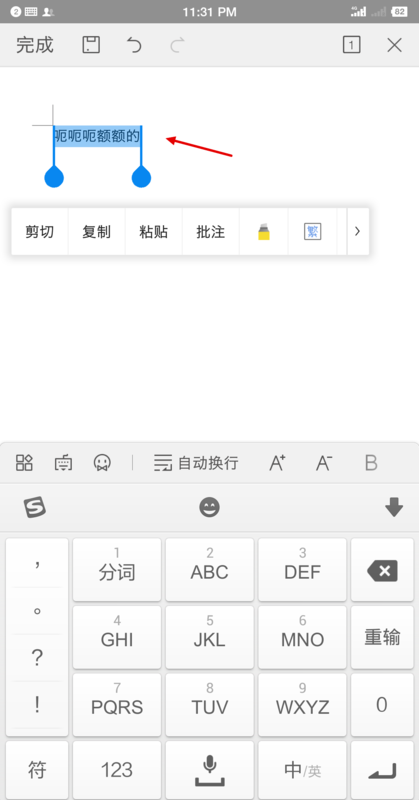 2.在编辑页面中找到想要添加下划线的文字,点击选中该文字,如下图所示。