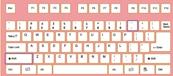 2、然后按住shift键,按动箭头所指的“-”键。需要多长的下划线就按动多久即可。