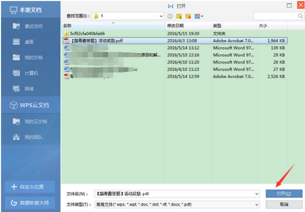 步骤2:选择要打开的pdf文件,点击打开