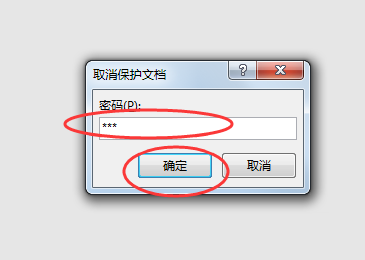 3、然后页面弹出“取消保护文档”对话框中输入密码,点击确定。