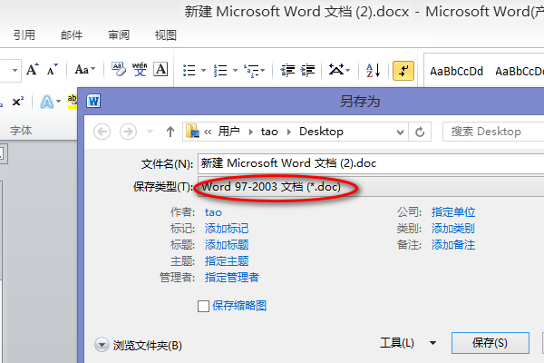 Word2003及更低的版本,保存格式为.doc
