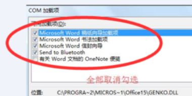 2、此时将打开如图所示的“COM加载项”界面此清除勾选所有相关COM加载项,如图所示点击“确定”按钮完成置。