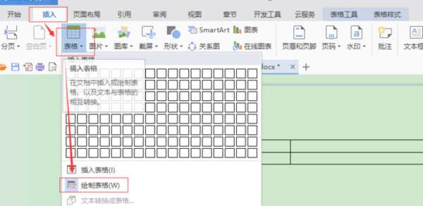 2、在已有的表格基础上加竖线即是增加表格的一列。首先找到上方菜单栏中的“插入”并点开,选择“表格”,在出现的菜单中选择“绘制表格”。