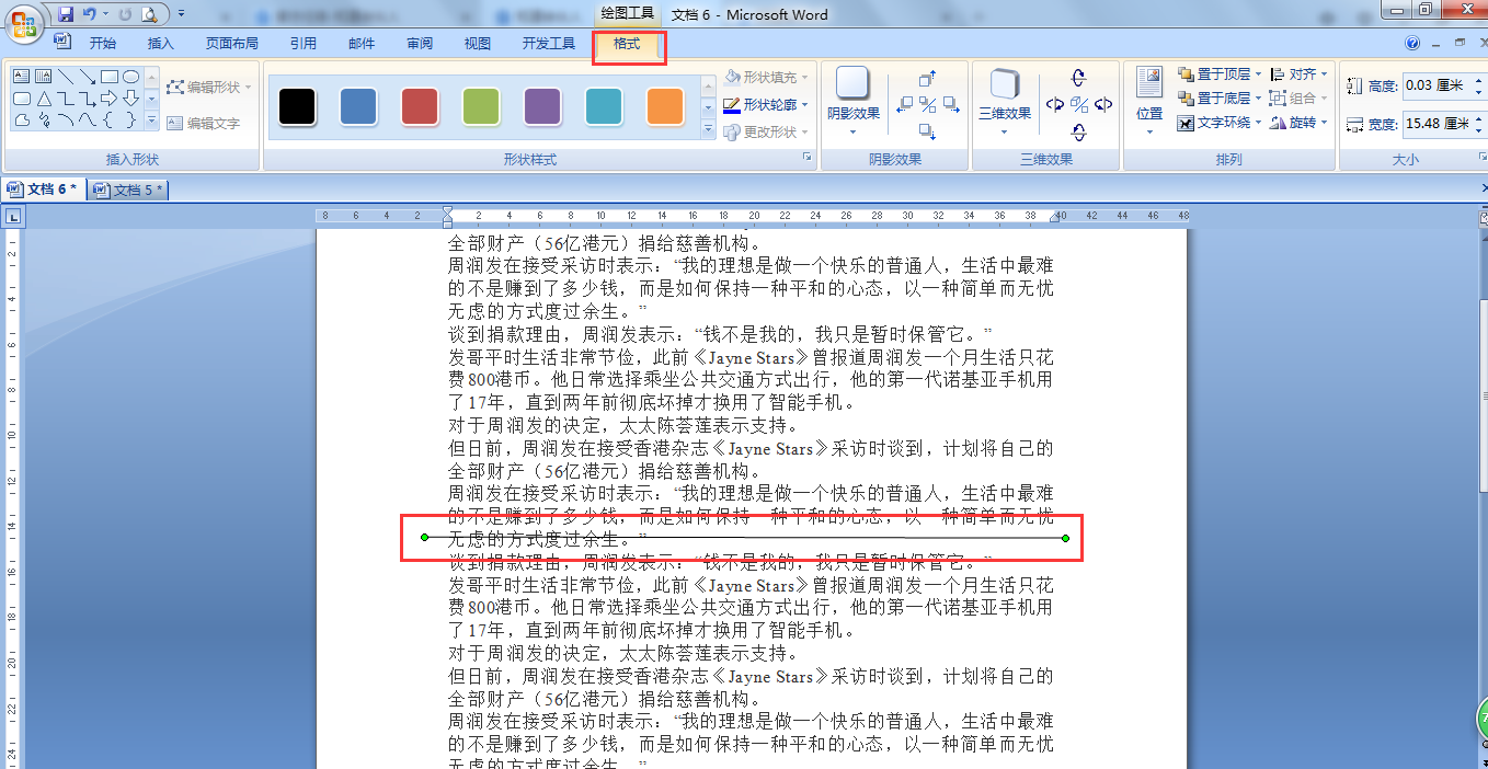 如果需要在文字上方或文字中间拦腰的横线,可以直接用绘图工具画出来。这种方法的缺点在于后期排版中,不容易对齐