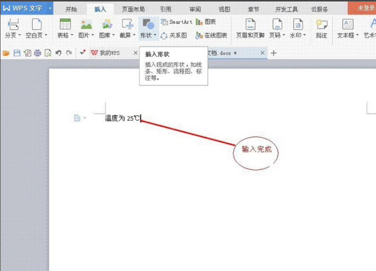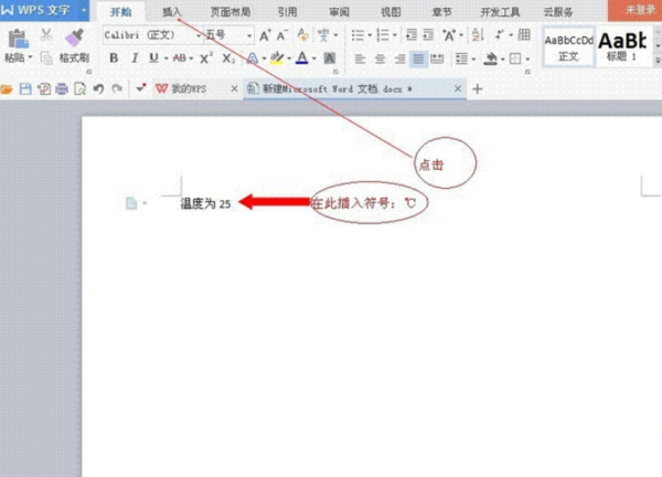 4、正文中要插入的地方出现符号:℃,完成插入操作。
