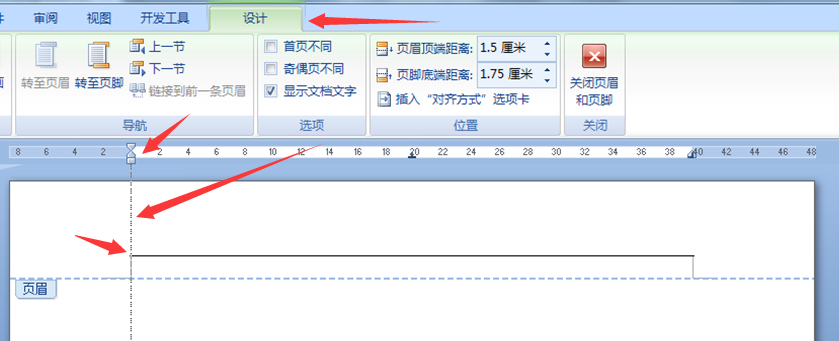 word2007中怎样调整页眉横线的长度和位置
