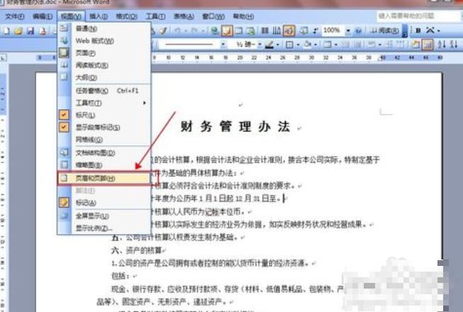 1、打开一个word文档,在菜单栏里点击“视图”,在弹出的对话框中选择“页眉和页脚”,点击。