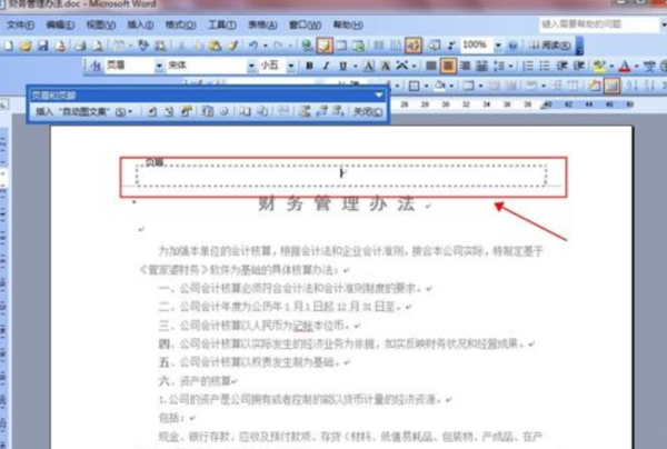 2、这时在word文档中出现了页眉和页脚编辑窗口,点进去,当光标闪烁时就可以象编辑文档一样进行编辑了。