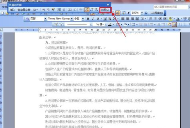 5、设置完后关闭页眉和页脚编辑条。