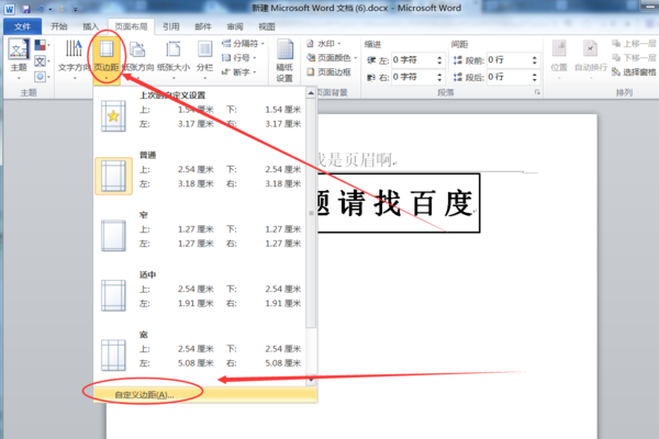 1、打开需要操作的WORD文档,在页面布局工具栏中找到并点击“页边距”,并在其下拉菜单中点击选择“自定义边距”。