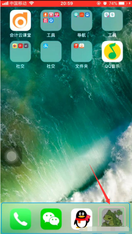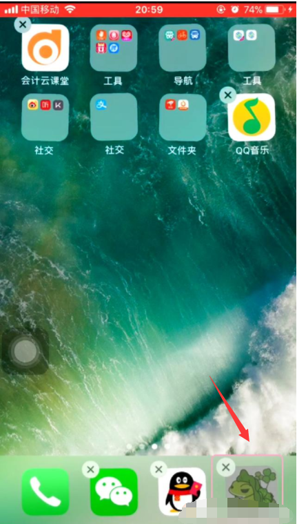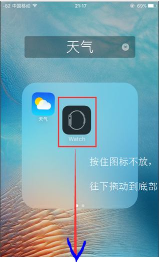 5.这时,不松开手指,顺势将App从文件夹中直接拖动到屏幕底部;