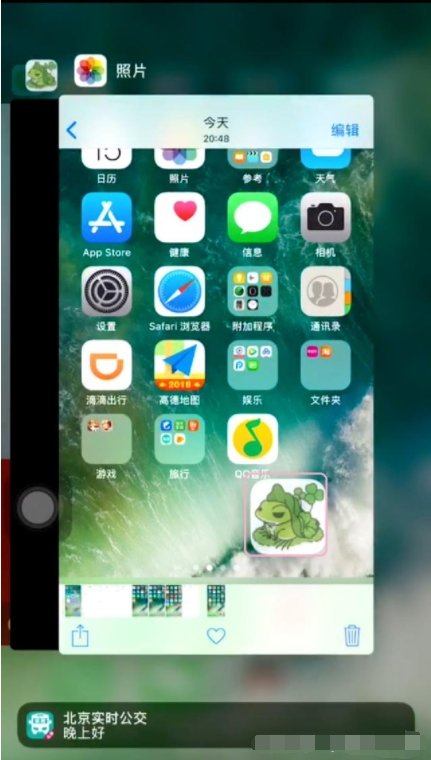 3、使用另外一只手连续按home键两次,调出后台。并把想要隐藏的程序拖入。