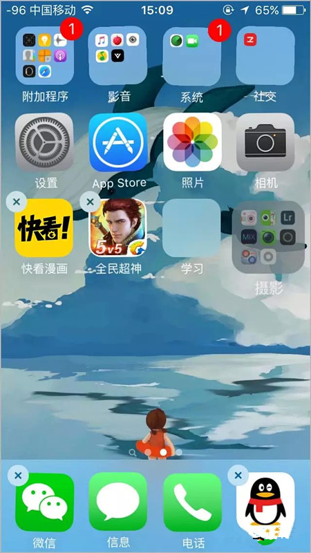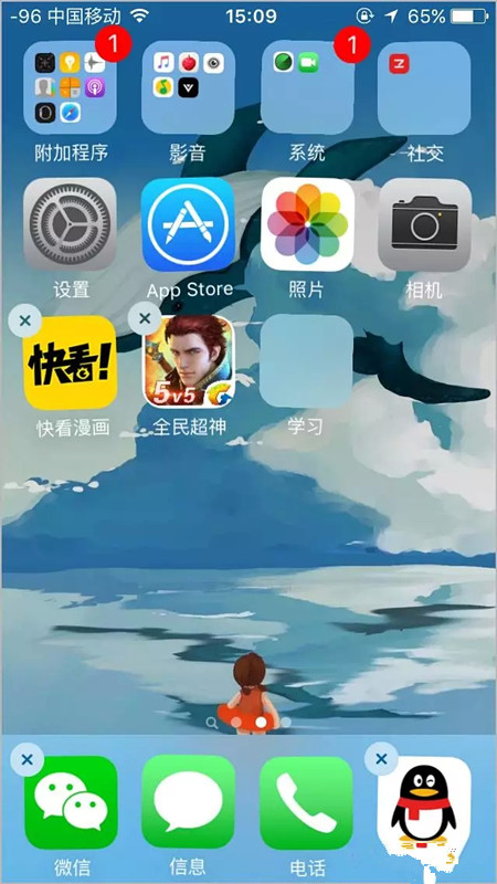 1、按住 App 图标不放直到他们开始左右晃动