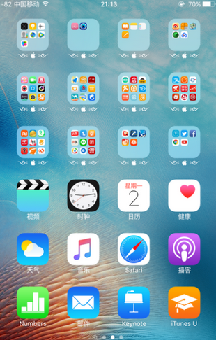 1.首先,你的iPhone上必须有一个桌面是布满App图标,不能留下任何一个空位;