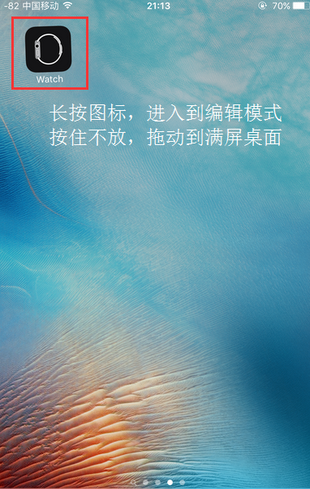 3.长按某个想要隐藏的App,直到所有应用App都抖动起来,进入App的编辑模式,按住不放拖动到刚刚的满屏桌面上;
