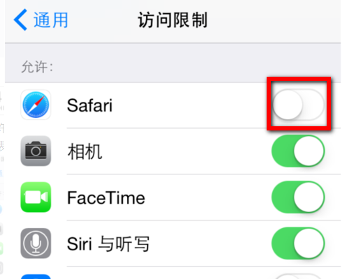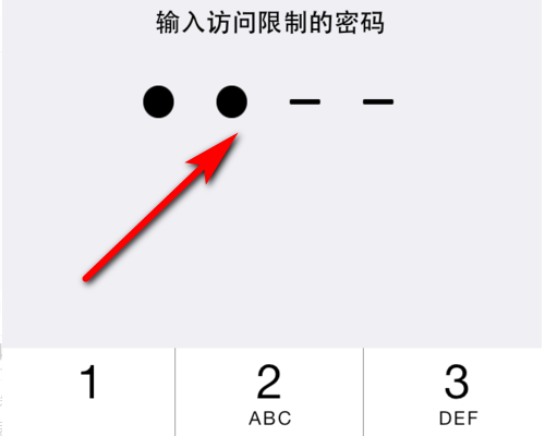 出现“输入访问限制的密码”的提示之后,输入访问限制密码。然后在“允许的内容”分组下面,关掉应用图标旁边的开关,即可隐藏应用。