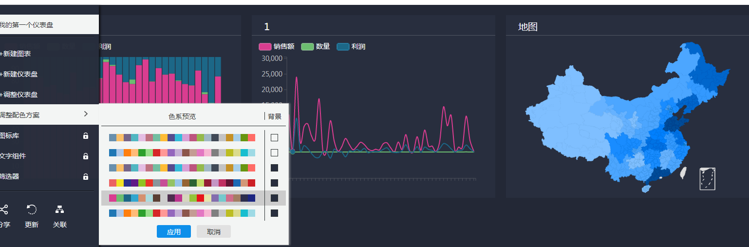 大数据魔镜,有地图可视化图表的。免费使用的。看看我做的效果图。