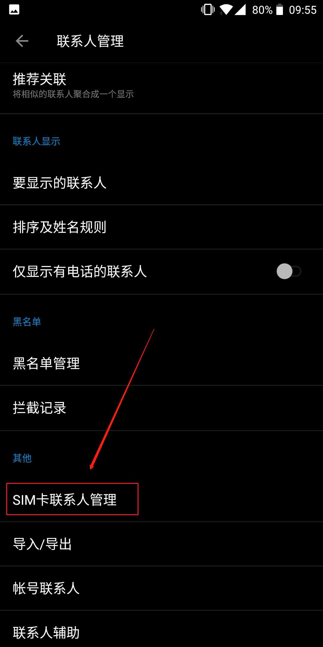 3.进入后,找到并点击“SIM卡联系人管理”。