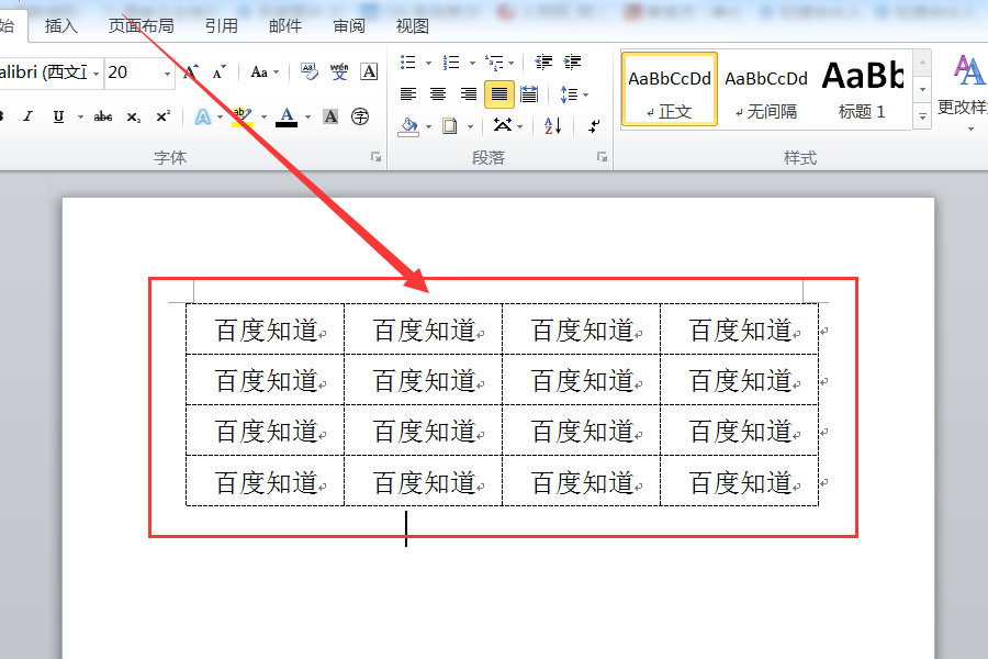 4、返回主文档,发现选中的表格边框已经由实线变成虚线。