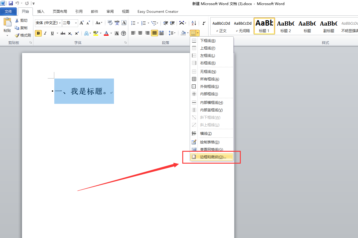 word怎么将第一段文字设置为标题
